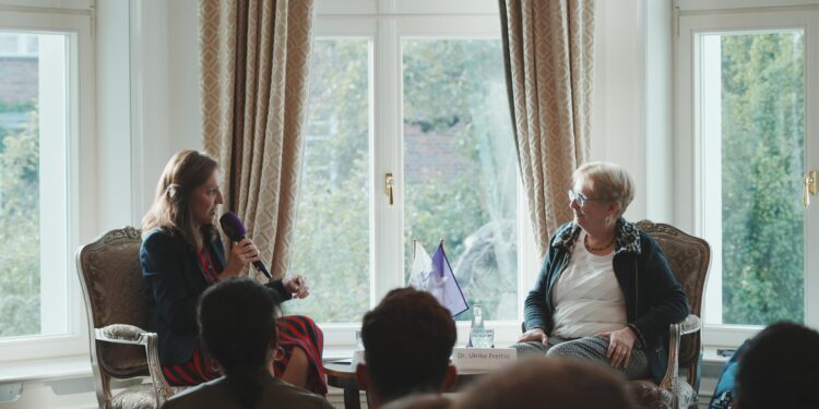 حلّت البروفسورة أولريكه فرايتاغ، رئيسة مركز دراسات الشرق المعاصر، وأستاذة الدراسات الإسلامية في جامعة برلين الحرة، ضيفة على مجلس الديوان الثالث، الذي انعقد بتاريخ 22 أكتوبر 2023م، لمناقشة التطورات الثقافية التي تشهدها منطقة الخليج العربي. وقد تركَّز النقاش على الديناميكيات الاجتماعية والثقافية التي تشهدها المنطقة العربية بشكل عام- ودول الخليج العربية بشكل خاص- وملامح التطور الثقافي في المجتمع الخليجي، والتوفيق بين الأصالة والحداثة، كما تناول الحوار استراتيجيات التنمية البشرية والثقافية على ضوء الرؤى المستقبلية التي انتهجتها غالبية الدول الخليجية. وقد أدارت الحوار، الإعلامية يوليانه هيلشر، المذيعة في القناة التلفزيونية الألمانية الثانية، ورئيسة منتدى برلين.