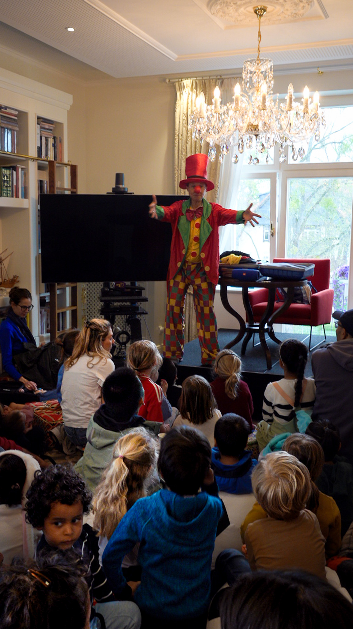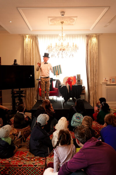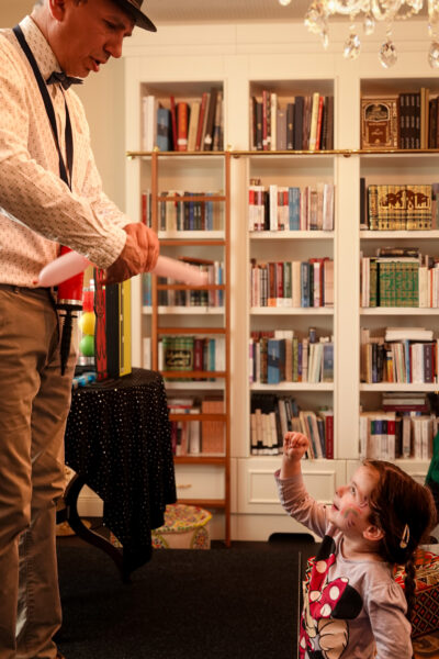أما يوم الأحد، فقد واصل الاحتفاء بأدب الطفل العالمي واللقاءات العابرة للثقافات. وكان برنامج “المهرّج الساحر” من أكثر الفقرات جذبًا، حيث جمع بين فنون المهرّجين والسحر وتشكيل البالونات، مُضفيًا أجواءً من الضحك والدهشة.