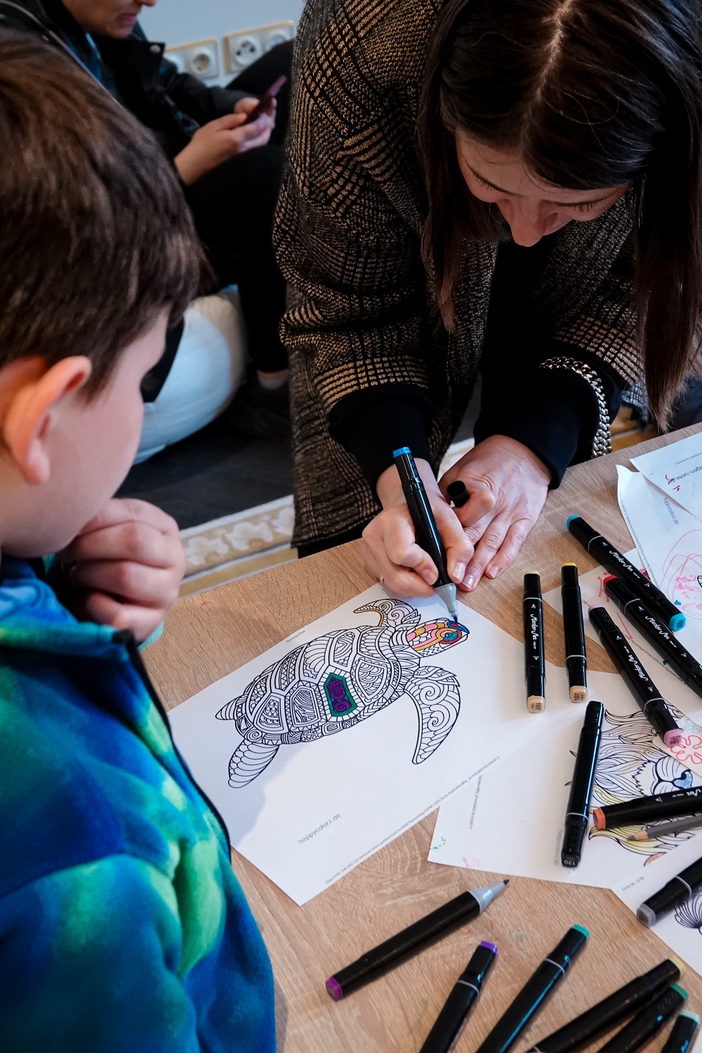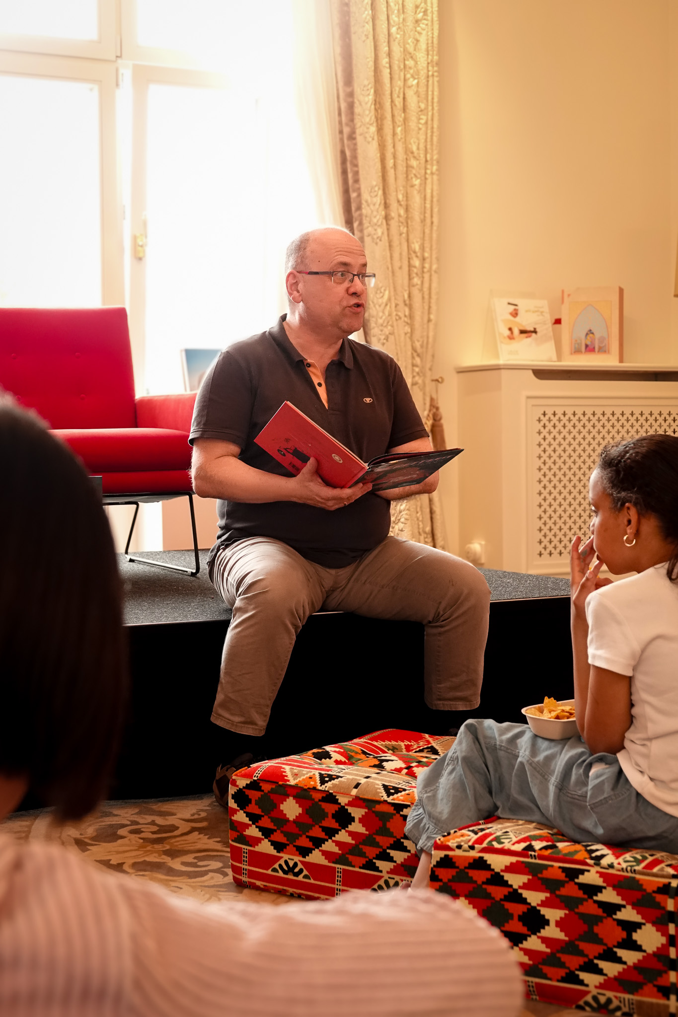 وتضمّن البرنامج كذلك عرض «سينما الكتاب المصوّر» من سلسلة AMIGUITOS بقصة “الطائر الطنان الذي فقد منقاره”، إلى جانب فقرات موسيقية على البيانو قدّمتها مدرسة Zoyee للموسيقى، وقراءة مصوّرة من كتاب الأطفال النرويجي “وقت النوم – أبي والكتاب الذي يتحدث عني” الصادر عن دار Kullerkupp.