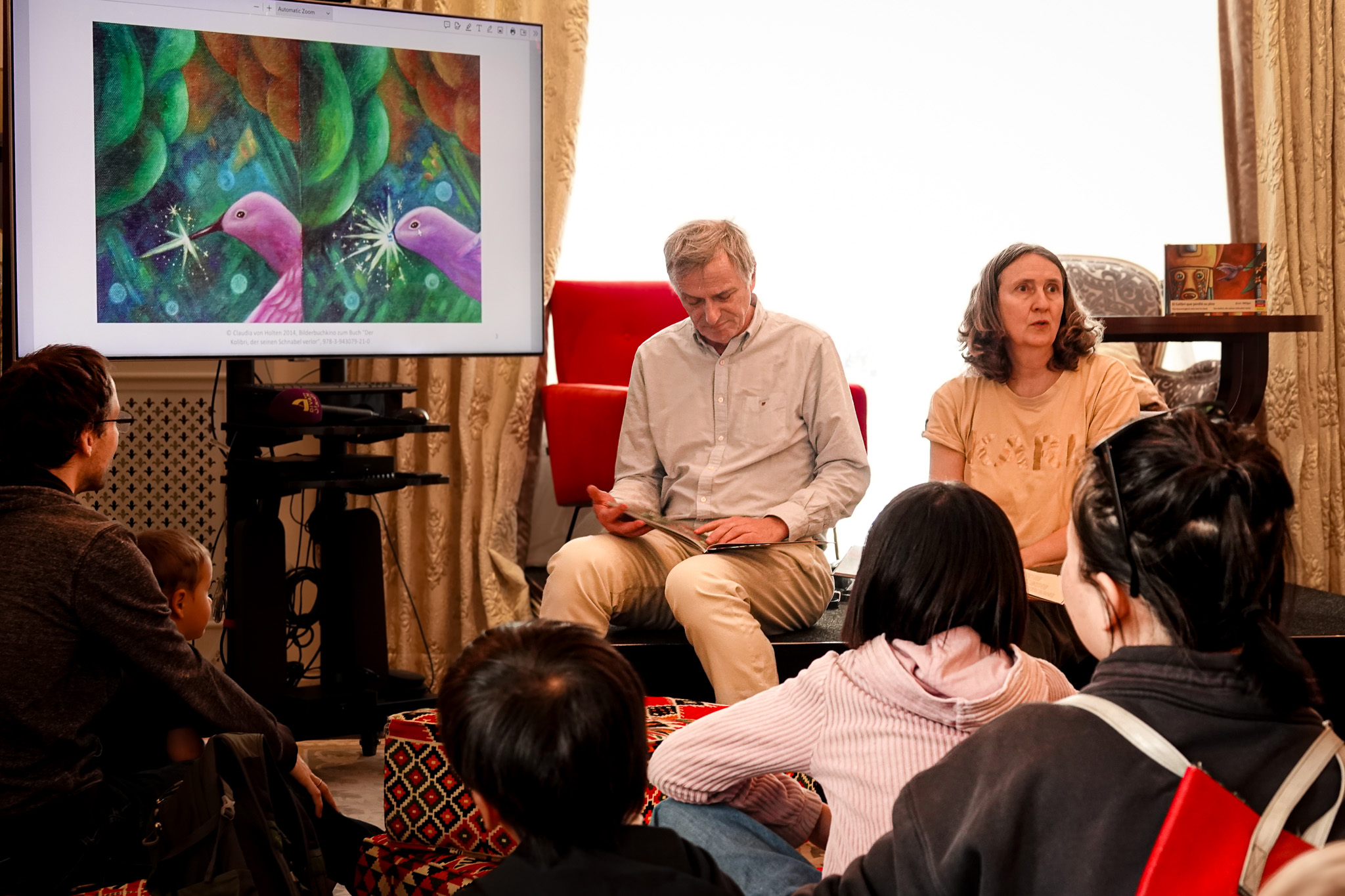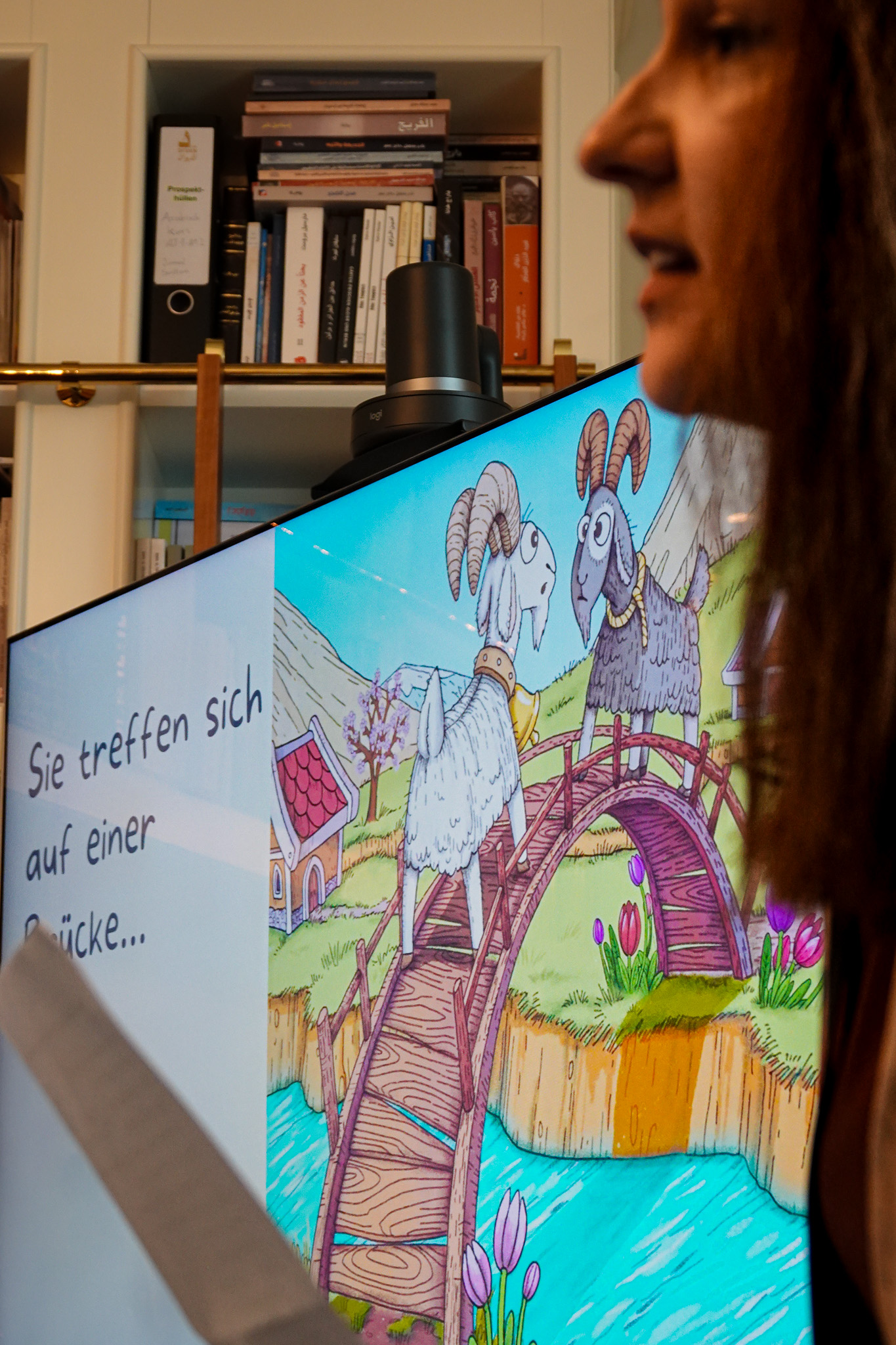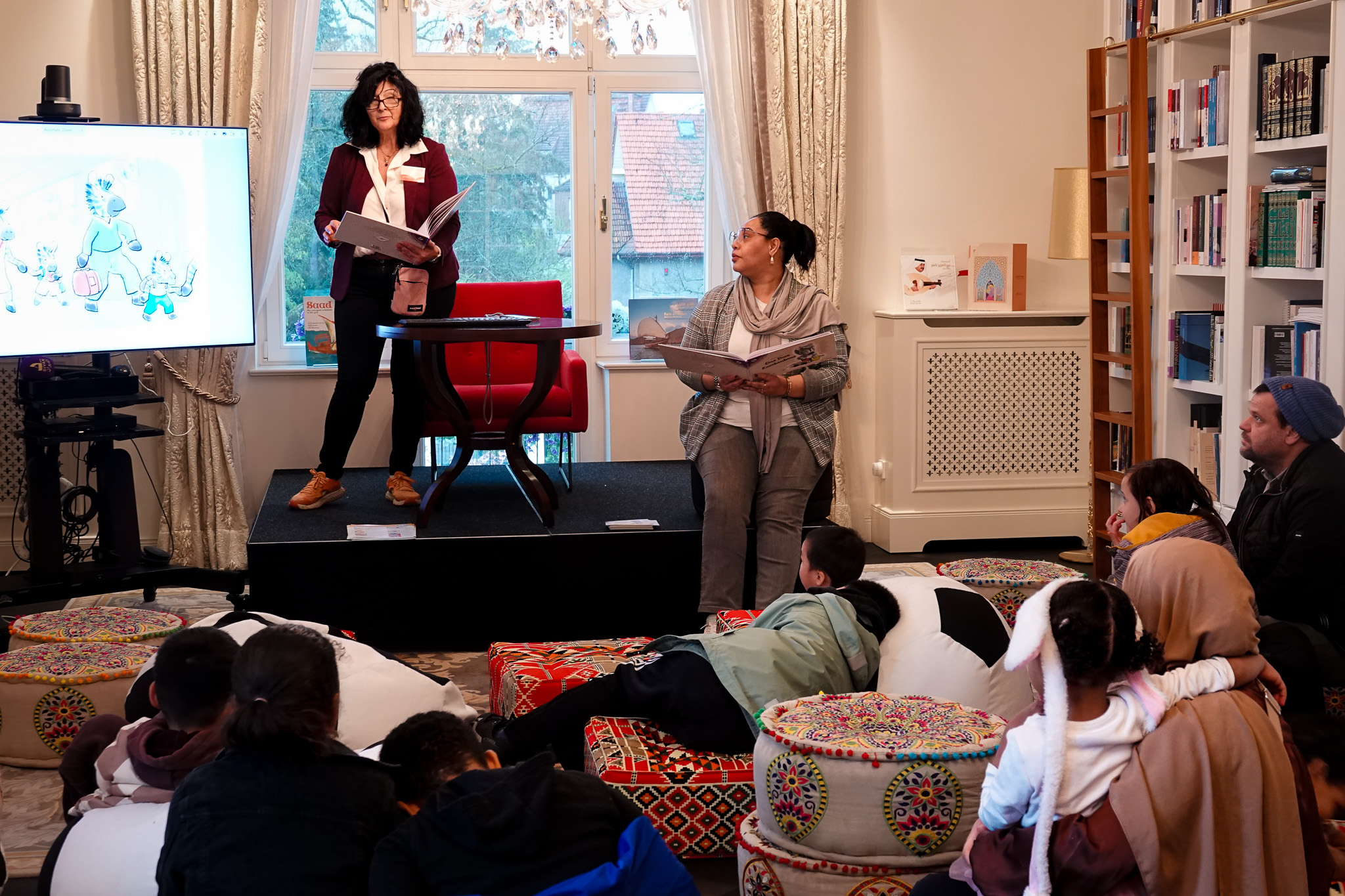وفي فترة بعد الظهر، قدّمت دار Edition Orient قراءة من كتاب الأطفال الثنائي اللغة “ماجد وفوضاه”، الصادر حديثًا بالتعاون مع الديوان، باللغتين الألمانية والعربية. كما قدّمت الكاتبة المعروفة كاتارينا غروسمان-هينسل كتابيها “في انتظارك” و”الخسارة هي شيء للرابحين”، وتفاعلت مع الجمهور الصغير في حوار حيّ ومثمر.