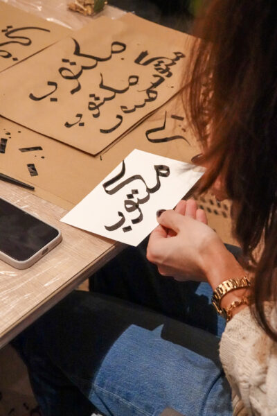 Am 9. Dezember 2025 fand im Divan – Das Arabische Kulturhaus erneut ein Kalligraphie-Workshop unter der Leitung des renommierten Künstlers Daniel Arab statt. Wie bereits in der Vergangenheit wurde der Kurs in Zusammenarbeit mit der Humboldt-Universität Berlin angeboten und sprach zahlreiche Interessierte an. Aufgrund der großen Nachfrage konnten zwei aufeinanderfolgende Kurse durchgeführt werden.