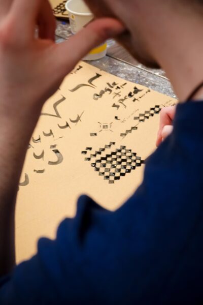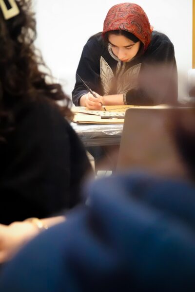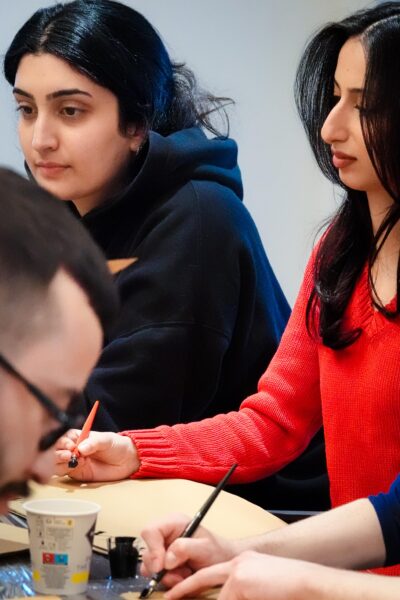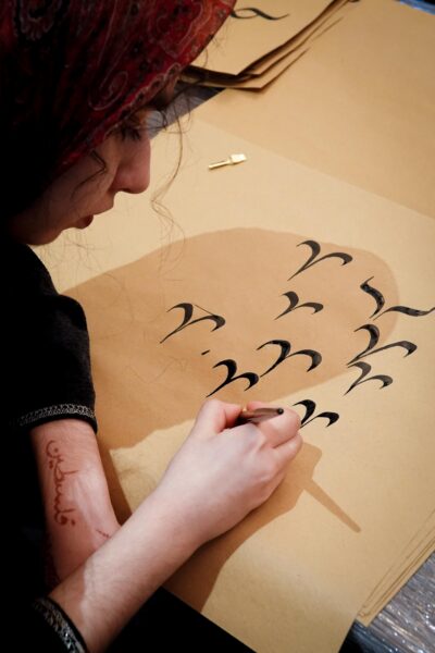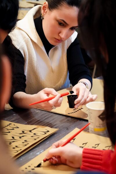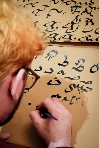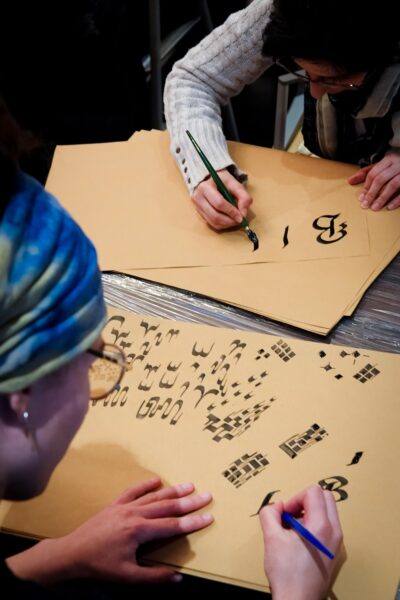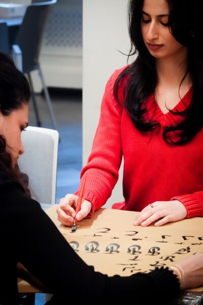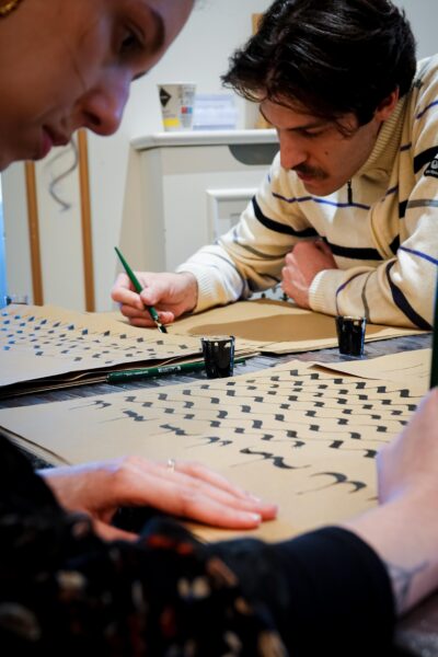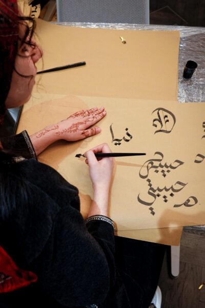 Der Workshop bot sowohl eine theoretische Einführung in die Kalligraphie, als auch praktische Übungen. Die Teilnehmenden hatten die Möglichkeit, eigene Schriftzüge zu gestalten und den Umgang mit traditionellen Werkzeugen zu erlernen.