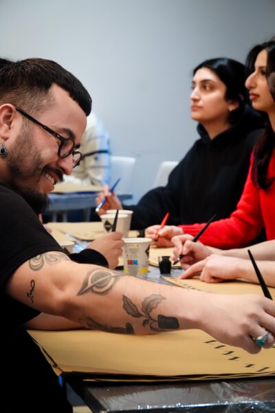 In einer offenen und kreativen Atmosphäre entwickelte sich ein lebendiger Austausch über kulturelle Ausdrucksformen, Ästhetik und die Rolle von Schrift als identitätsstiftendes Element. Daniel Arab begleitete die Gruppe mit viel Engagement und individueller Unterstützung, sodass die Teilnehmer wertvolle Impulse mitnehmen konnten.