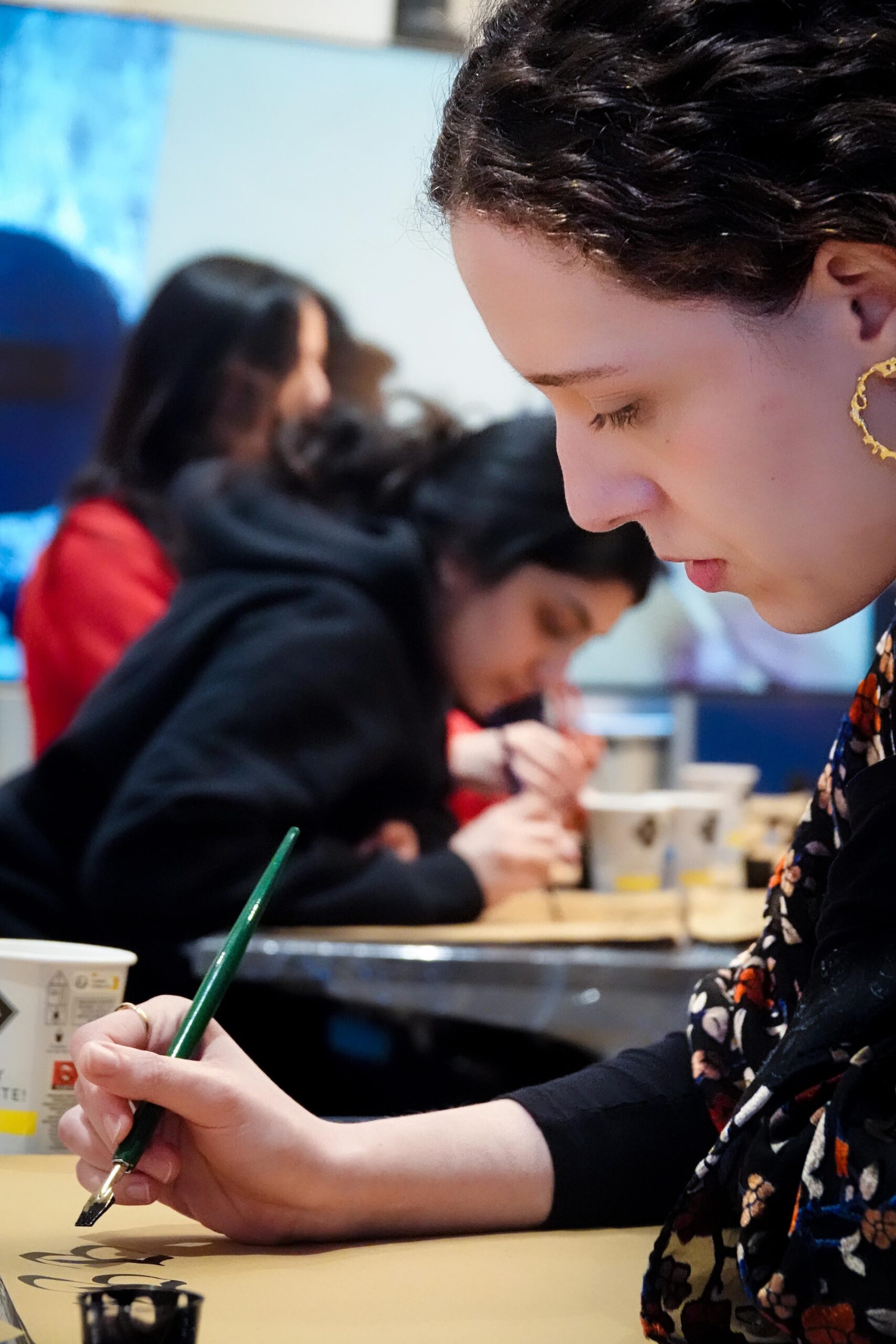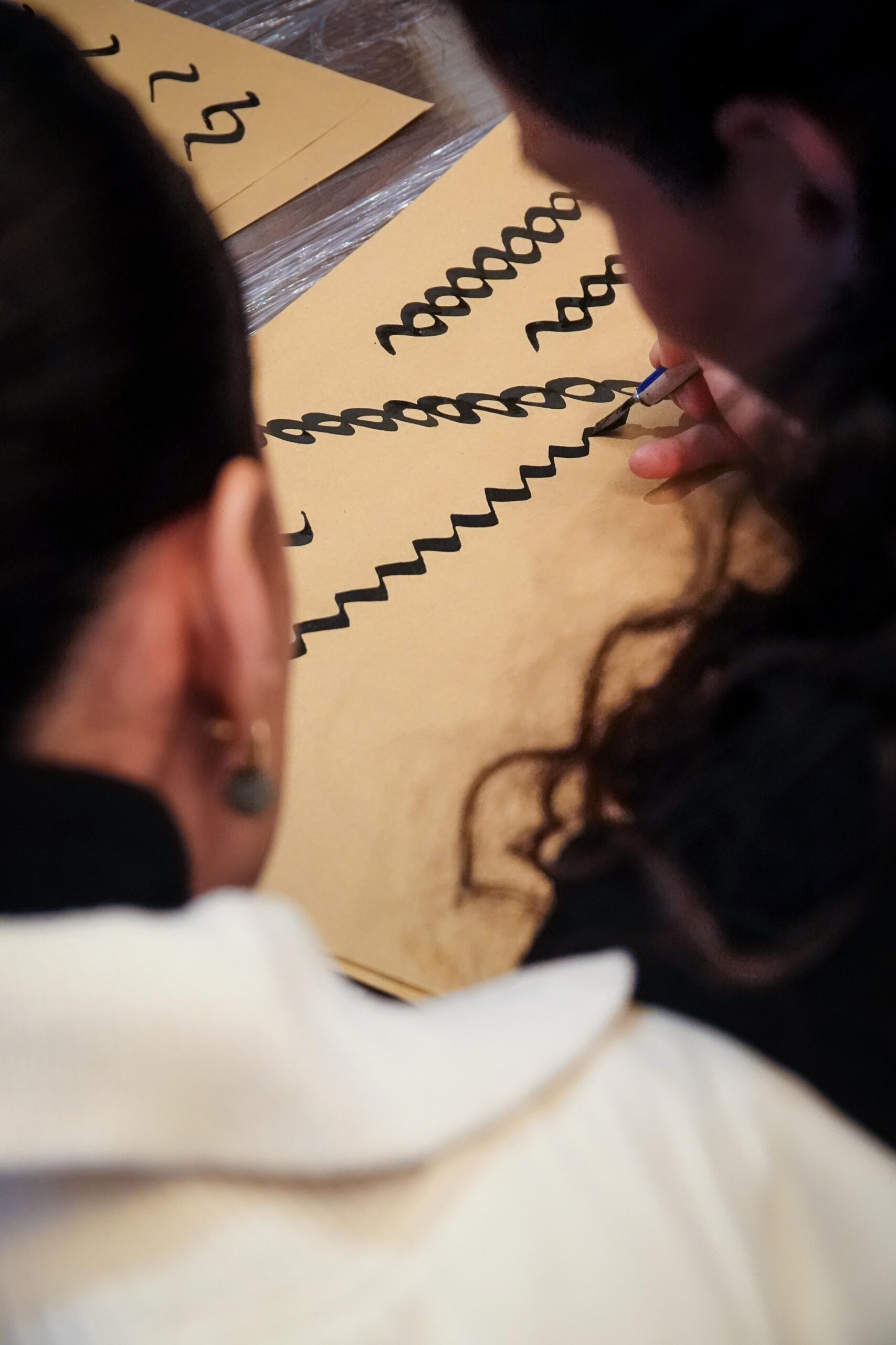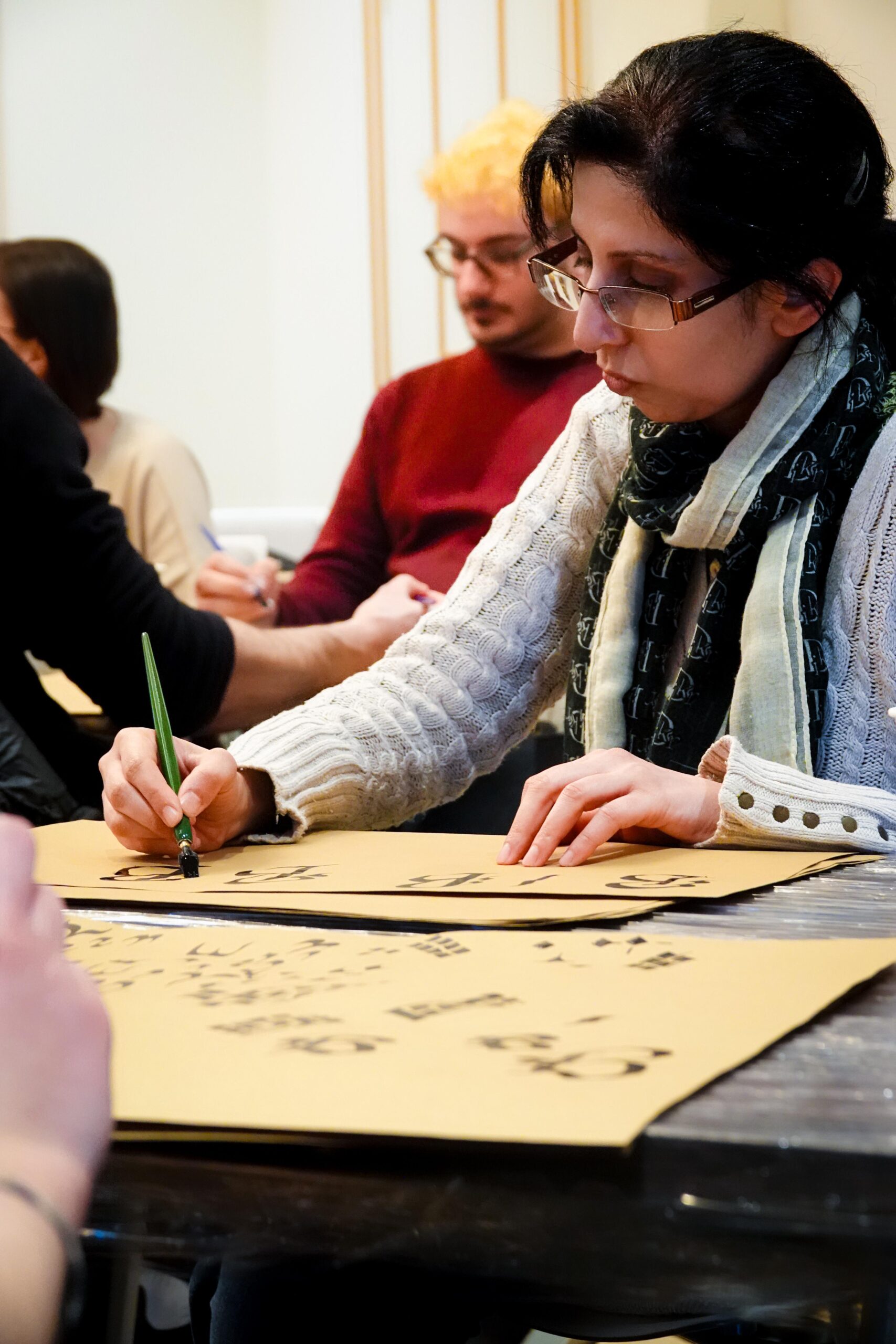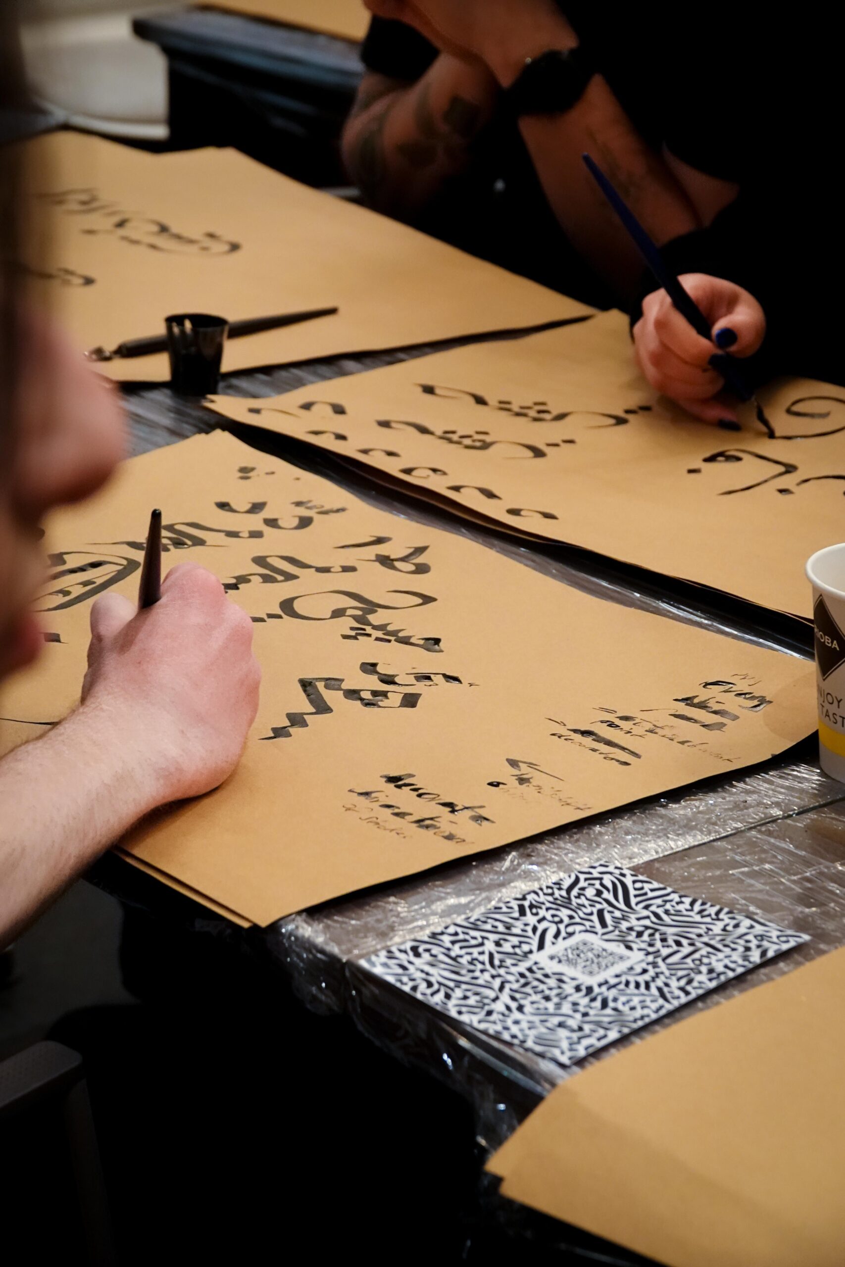 Der Workshop bot sowohl eine theoretische Einführung in die Kalligraphie, als auch praktische Übungen. Die Teilnehmenden hatten die Möglichkeit, eigene Schriftzüge zu gestalten und den Umgang mit traditionellen Werkzeugen zu erlernen.