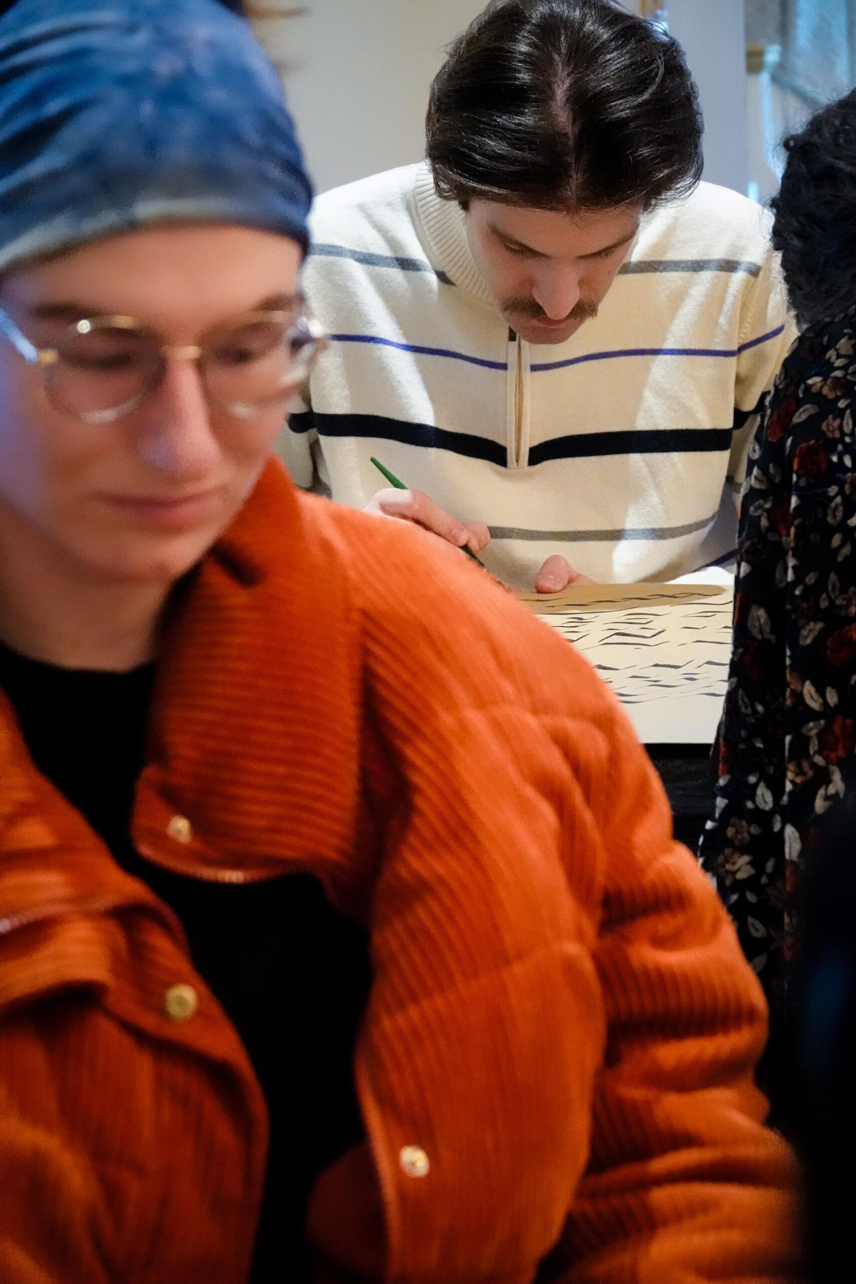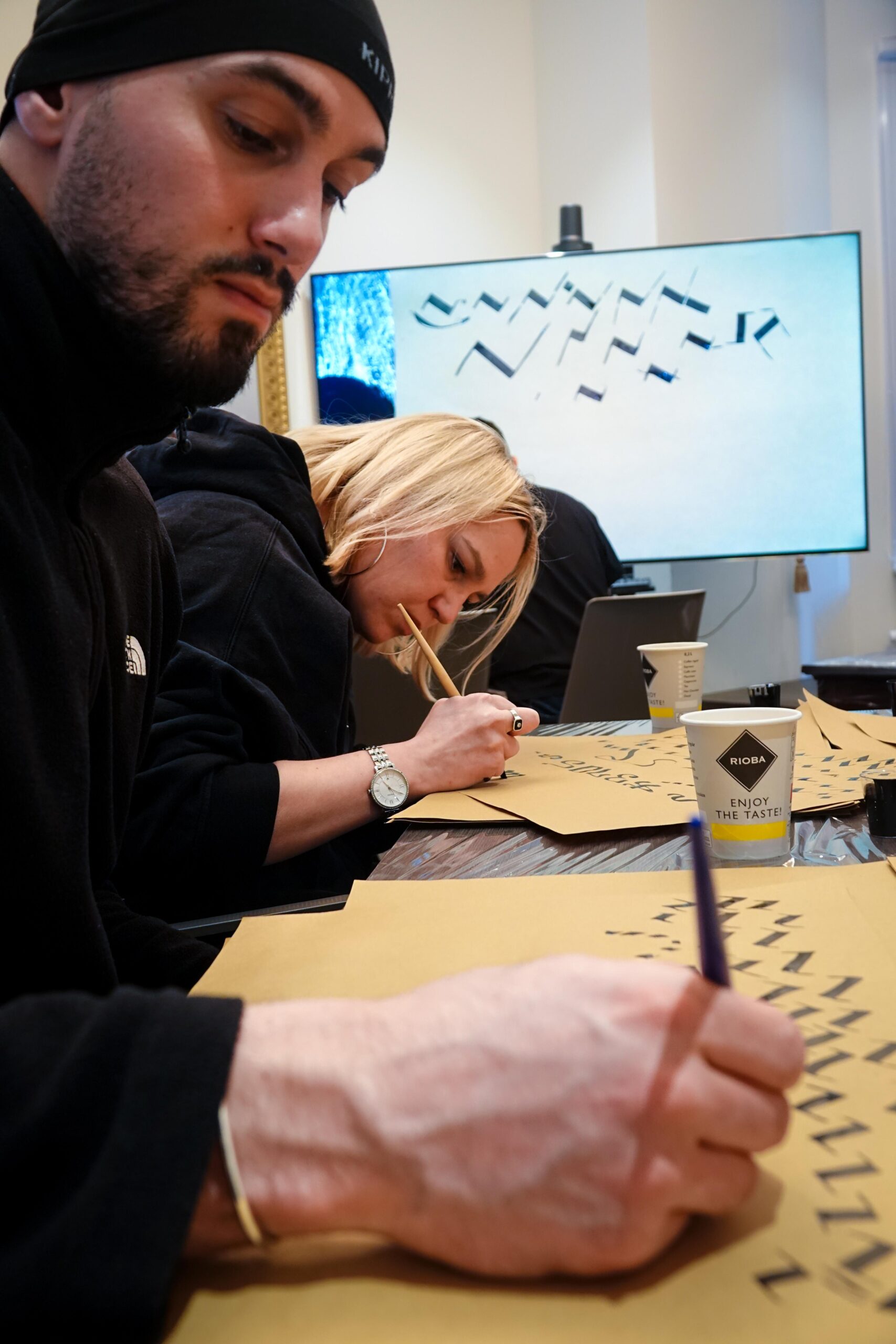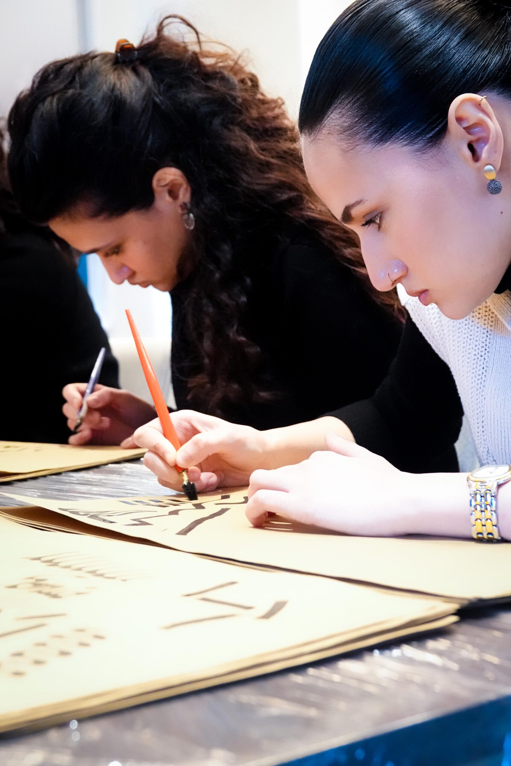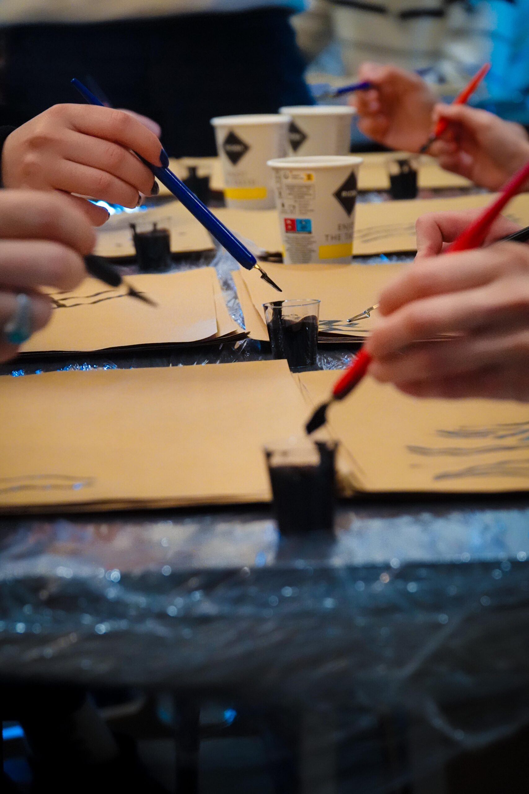 Der Workshop bot sowohl eine theoretische Einführung in die Kalligraphie, als auch praktische Übungen. Die Teilnehmenden hatten die Möglichkeit, eigene Schriftzüge zu gestalten und den Umgang mit traditionellen Werkzeugen zu erlernen.