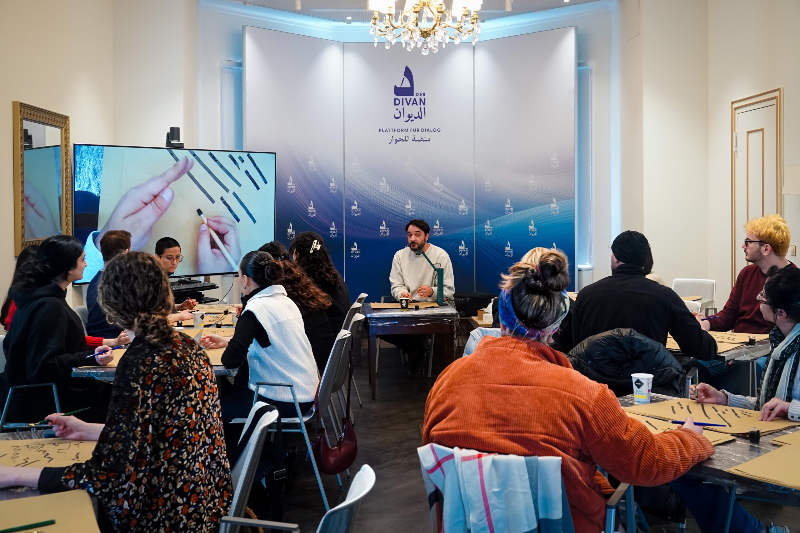 Der Mashriq and Maghrib Policy Club ist eine studentische Initiative an der Hertie School, mit dem Ziel ihre Studierende auf Führungspositionen in Politik, Wirtschaft und Zivilgesellschaft vorzubereiten. In dem Glauben an die Bedeutung des kulturellen Dialogs hat Der Divan den Studierenden diese Gelegenheit eröffnet, mit dem Ziel, einen kreativen Zugang zur Kultur der arabischen Schriftkultur zu ermöglichen. Für die Durchführung konnte der renommierte Kalligraph Daniel Arab gewonnen werden, der sich intensiv mit der Ästhetik und den Traditionen der arabischen Schrift beschäftigt und sein Wissen bereits bei zahlreichen Kalligraphie-Workshops im Divan mit großem Engagement vermittelt hat.