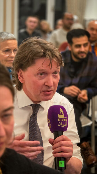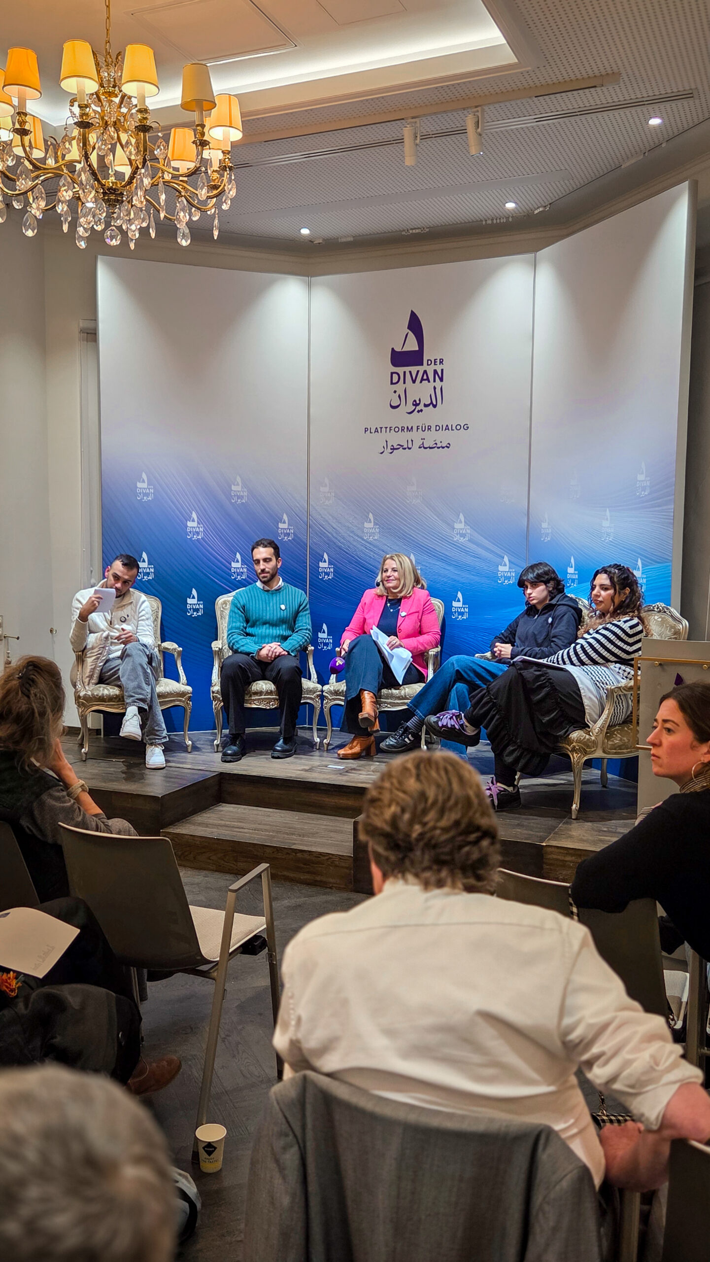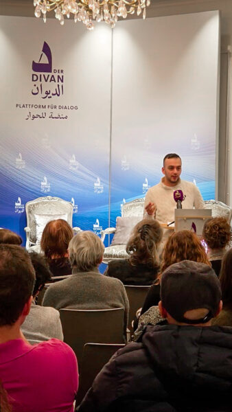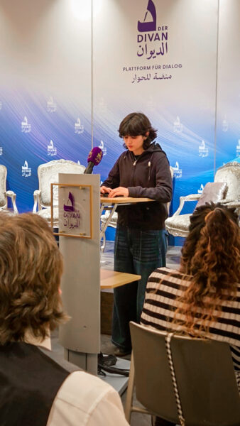 Am 20. November 2025 fand im Divan – Das Arabische Kulturhaus in Kooperation mit The Poetry Project Berlin e.V. ein deutsch-arabischer Poesieabend statt, der rund zwei Stunden lang das Literaturhaus mit vielstimmigen poetischen Perspektiven erfüllte. Zahlreiche Besucher*innen fanden sich ein, um die vorgestellten Texte zu erleben und miteinander in Austausch zu treten.