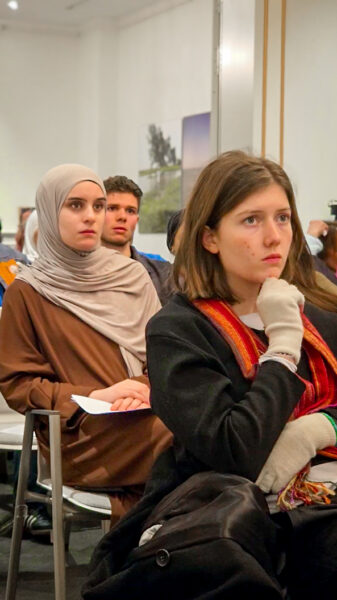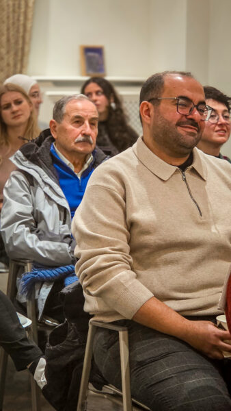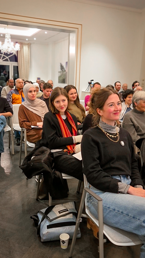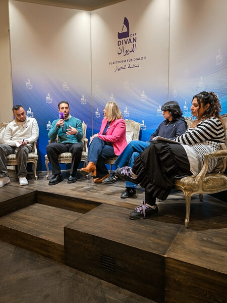 Die beteiligten Poet*innen – Ali Alzaeem, Rojin Namer, Omar Darawsha und Jaklin Schilbaya – präsentierten deutsche und arabische Gedichte, die sich mit Themen wie Ankommen und Zugehörigkeit, Identität, Sprache, Erfahrungen von Diskriminierung, dem vermeintlich Fremden und den damit verbundenen Stereotypen auseinandersetzten. Die vielfältigen biografischen Hintergründe der Autorinnen spiegelten sich unmittelbar in ihren Texten wider und eröffneten dem Publikum eindrückliche Einblicke in individuelle wie kollektive Erfahrungen.