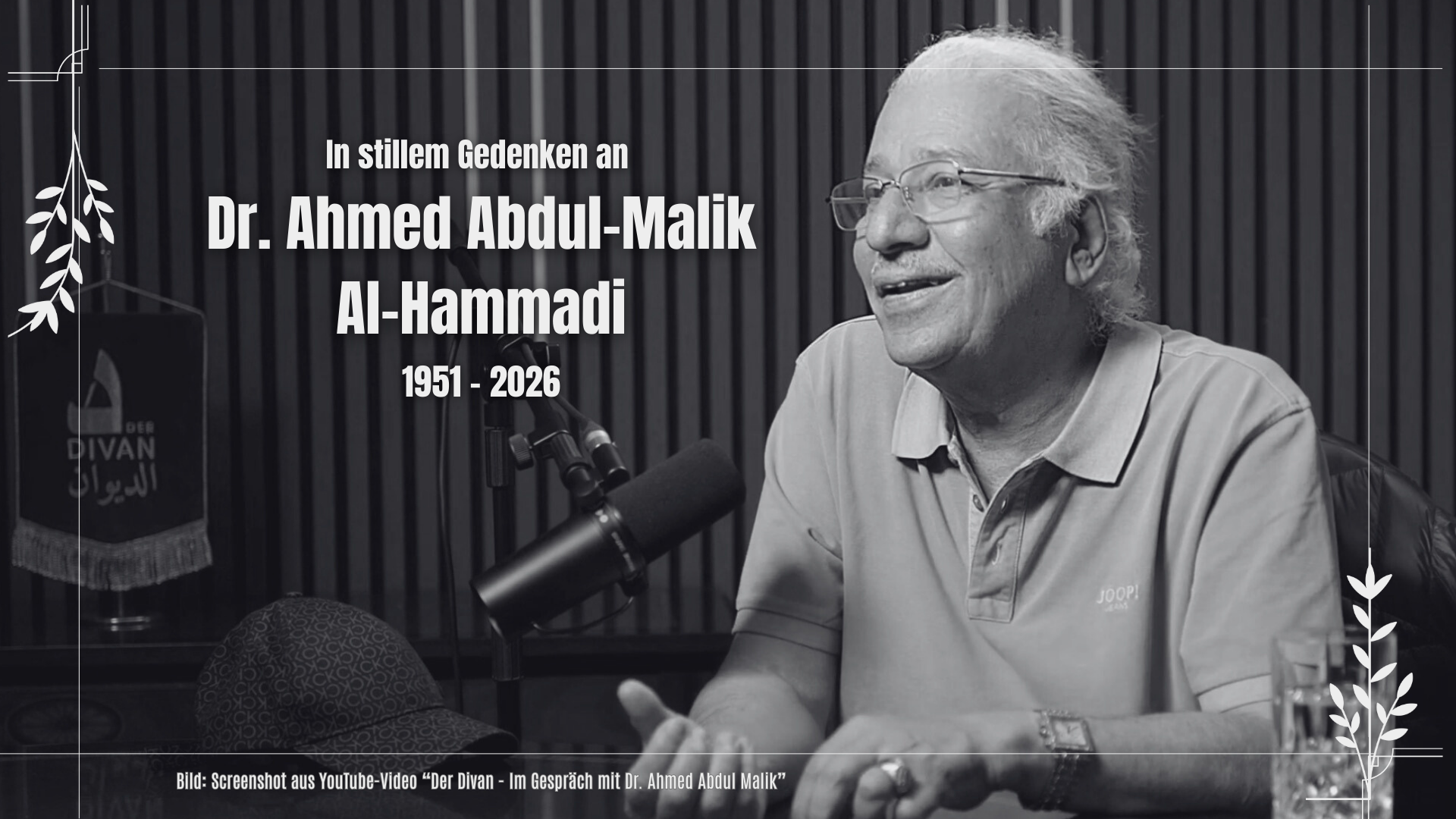 Mit großer Trauer nimmt der Divan – das Arabische Kulturhaus Abschied von der Medienpersönlichkeit und Romanautor Dr. Ahmed Abdul-Malik Al-Hammadi, der nach einem langen und verdienstvollen Wirken im Dienst der katarischen und arabischen Medienlandschaft verstorben ist.