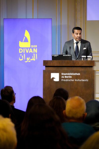 Den Abend eröffneten Herr Christoph Rauch, Abteilungsleiter der Orientabteilung der STABI und S.E. Abdalla Al Hamar, Botschafter des Staates Katar und Beiratsvorsitzender des Divan, welcher eine persönliche Anekdote zu Kalila und Dimna mit dem Publikum teilte. In seiner Einleitung betonte er die zeitlose Aktualität der Fabelsammlung: Obwohl das Werk viele Jahrhunderte alt ist, werde es bis heute immer wieder neu gelesen und interpretiert. Gerade darin liege seine besondere Stärke: Jede Generation, jede Leserin und jeder Leser finde darin eigene Bedeutungen und moralische Perspektiven.